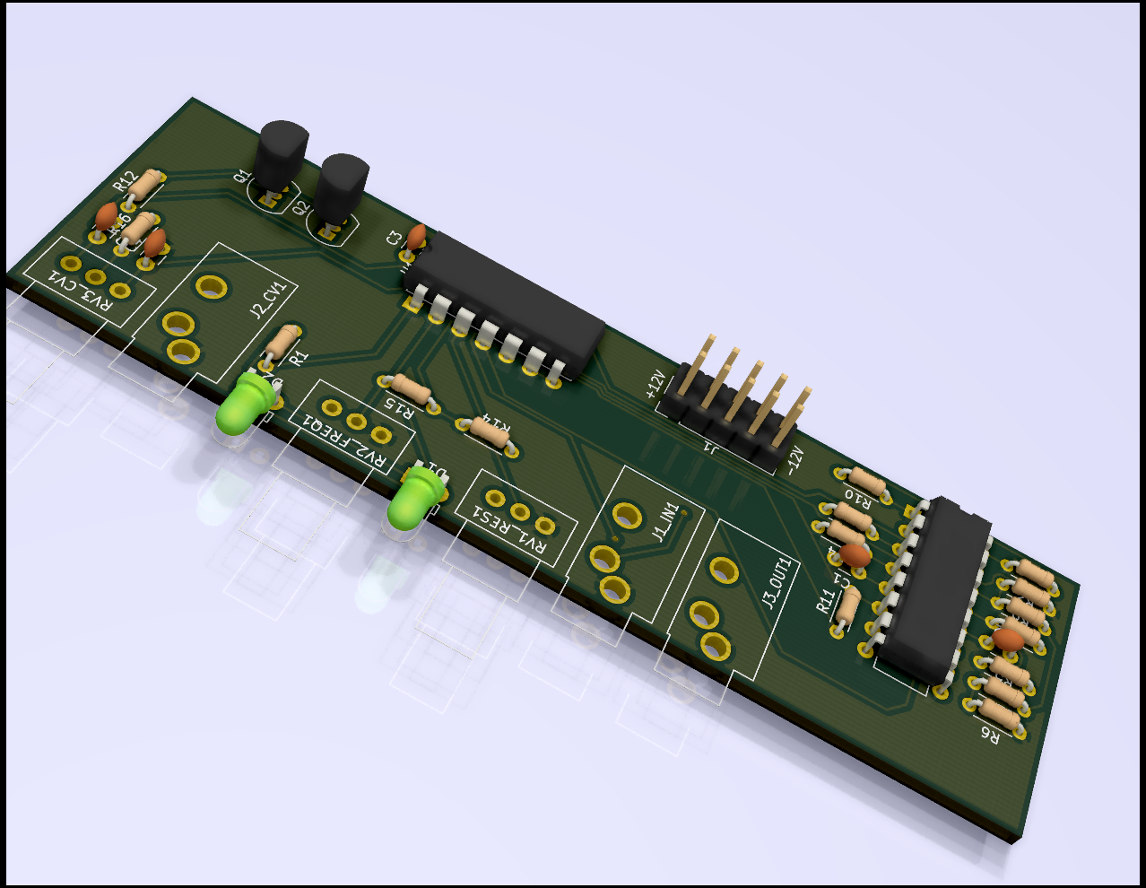 No tengo pensado construir uno. De hecho, opino que la síntesis modular es una pijada anacrónica, pero proyectar PCBs es uno de mis últimos hobbies y creo que puedo cambiar la apariencia de este circuito para que parezca más profesional. Por eso he intentado conseguir los siguientes objetivos de diseño: