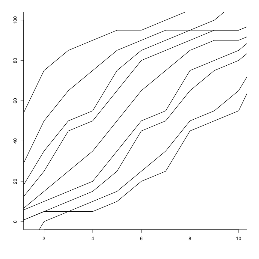 Por lo que se podrían resumir los 99 valores de esta en media docena de números, haciendo factible su memorización. Puede llamar la atención que el 50 no corresponda con el descriptor 50/50, pero la inconsistencia se encuentra en estas últimas ya que el autor presenta unas situaciones no equilibradas, con cuatro descriptores por debajo y seis por encima. Salvo en este apartado, creo que se ha logrado una tabla más consistente para consultar como oráculo de Myhthic, respetando en todo momento la intención original del autor, pero aplicando las técnicas estadísticas adecuadas, como se puede comprobar en la gráfica final. Parece el antes y después de un anuncio de la teletienda.