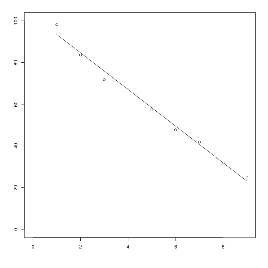seq(1, 9) -8.7955 0.3409 -25.80 3.36e-08 ***