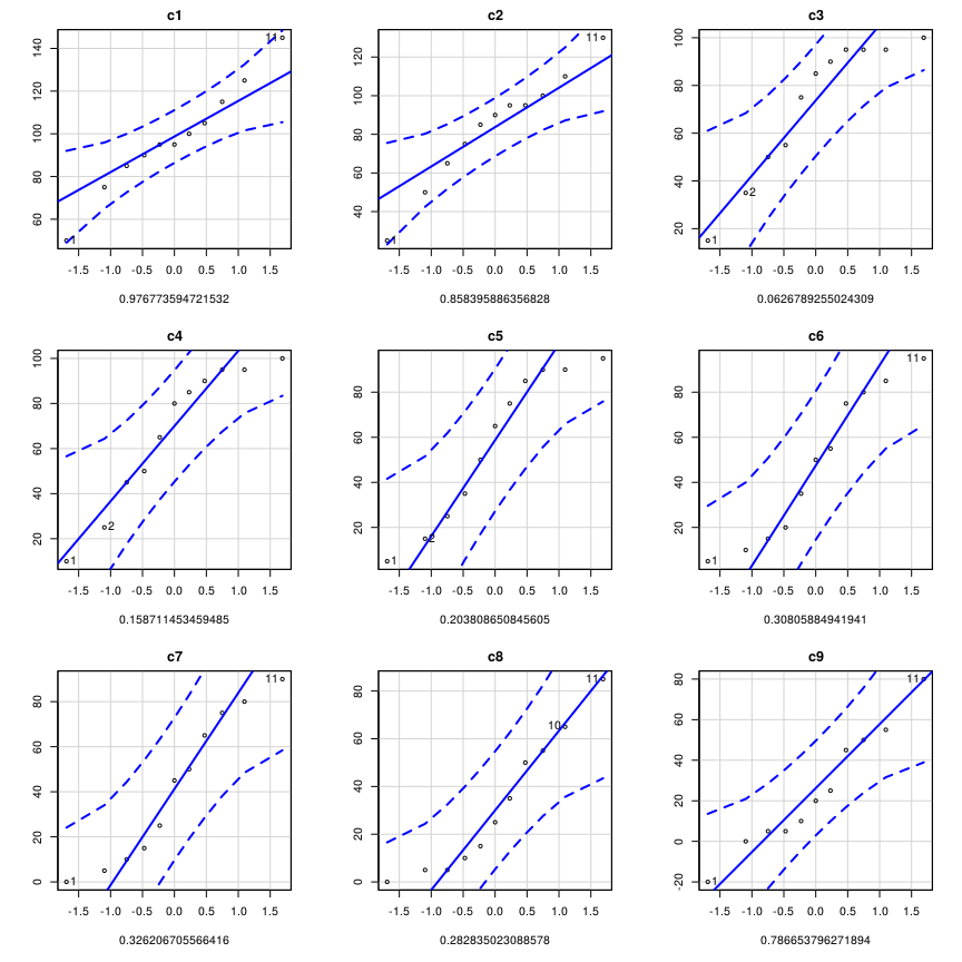 Como era de esperar, el oráculo es normal. Ya que estamos, voy a dibujar también los gráficos Q-Q, simplemente porque me gusta cómo quedan.